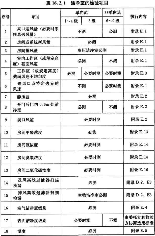 16.1.1 本章的工程檢驗(yàn)程序和項(xiàng)目適用于潔凈室工程調(diào)試、工程驗(yàn)收、使用驗(yàn)收時(shí)的檢驗(yàn)和委托方(用戶)要求的單項(xiàng)性能測定,以及日常例行檢驗(yàn)和監(jiān)測。